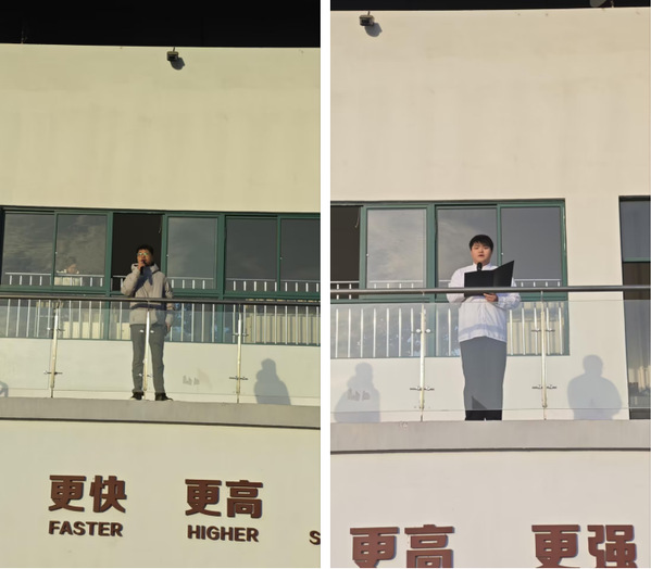 7点50分,伴随着雄壮有力的出旗曲,旗手、护旗手迈着激昂的步伐入场,在庄严的国歌声中,全体师生肃立,注视着五星红旗冉冉升起。随后,智能化23401班的刘少宇同学,以“锚定蓝图,筑梦起航”为题,回望过去的一年校园点滴,并结合专业学习与实践感悟,分享了新时代建筑学子将个人成长融入国家建设发展的思考。